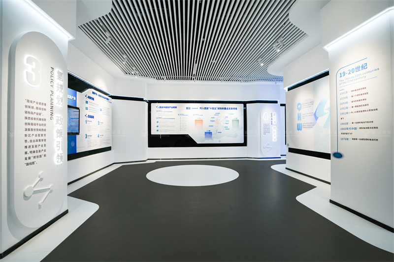 隨著全球綠色經濟的發展,氫能作為一種綠色清潔的二次能源,在世界能源轉型的舞台上正發揮巨大的潛力,氫也被稱為未來能源,是開啟全球零碳暢想的鑰匙。氫合灣兩鏈融合科創區在各級領導的關懷下,充分利用陝西的科創和能源優勢,圍繞“創新驅動”的理念,發展氫能產業,打造陝西省首個氫能源主題展廳,建設陝西省內具有前瞻性、標杆性的氫能源展廳。氫能源展廳設計施工